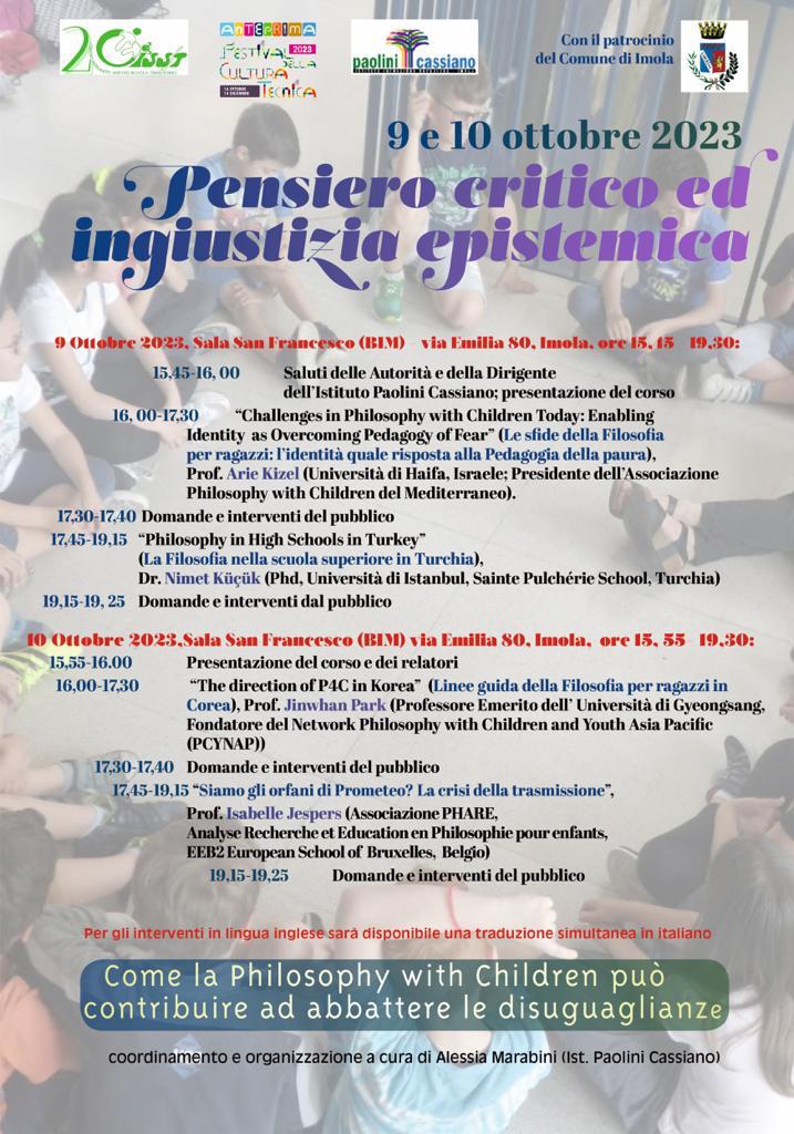 Quattro relatori esperti affronteranno tematiche e riflessioni sulle modalità in cui il pensiero critico, attraverso il metodo Philosophy for/with Children, può contribuire all’abbattimento di queste barriere e forme di disuguaglianza favorendo lo sviluppo di una sensibilità critica ed etica.